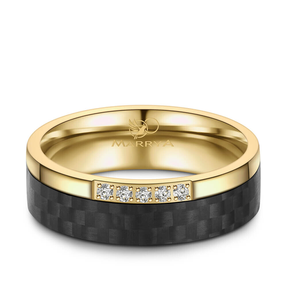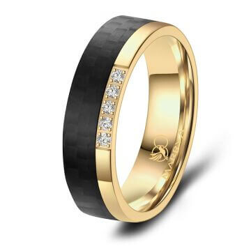 Ein Damenring aus Edelstahl mit 14K IP Gold-Beschichtung und schwarzem Kunststoff. Der Edelstahlanteil ist hochglänzend poliert. Der Ring ist mit 5 funkelnden AAAAA-Zirkonia mit Hochglanzeffekt in sicherer Krappenfassung veredelt. Dieser wunderschöne Bicolor Edelstahlring ist hochwertig verarbeitet und sitzt durch ihre Bombierung (an der Ringinnenseite abgerundet) sowie den abgerundeten Kanten sehr bequem am Finger. Ein traumhafter Ring mit einzigartiger Optik!