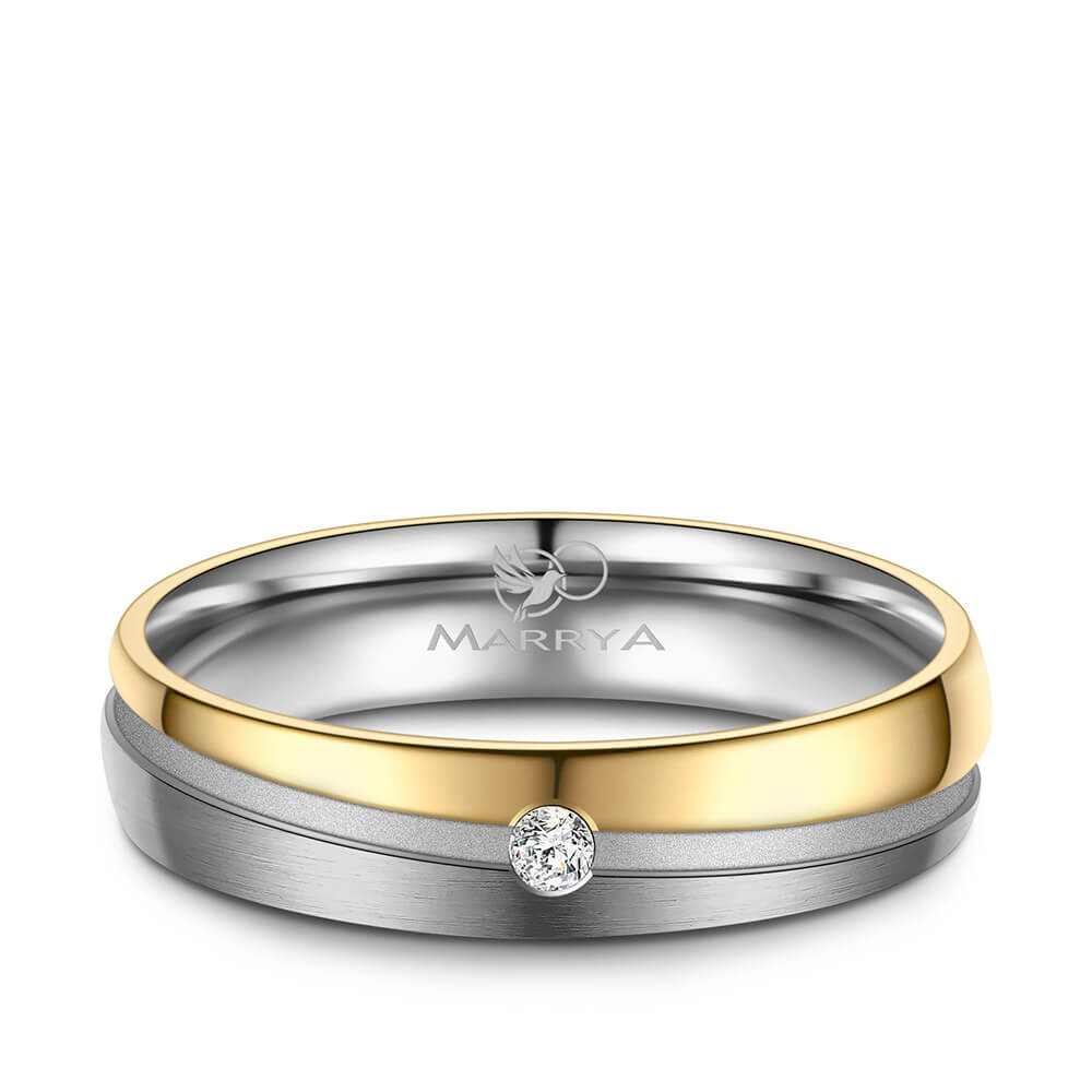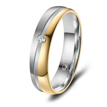 Ein hochwertiger Damenring aus sehr robustem Titan mit 14K IP Beschichtung in Gold. Dieser Titanring ist erstklassig verarbeitet, teilweise mattiert/poliert, und sitzt durch die Bombierung (an der Ringinnenseite abgerundet) sehr bequem am Finger. Der Damenring ist mit einem echten Brillanten veredelt.