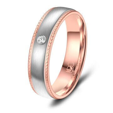 Ein wunderschöner Titanring mit Roségoldplattierung TI-42 und einem strahlenden und sicher gefassten echten Brillanten. Titan ist für seine vergleichsweise hohe Kratzfestigkeit und Stabilität bekannt, trotzdem ist es relativ leicht. Die Titan-Oberfläche des Rings ist matt gebürstet während die polierten Ränder mit Perlfugen verziert sind. Der Ring ist von innen abgerundet (bombiert). Dies sorgt für ein besonders angenehmen Tragekomfort am Finger.
