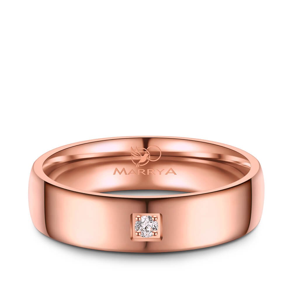 Ein Damenring aus Titan mit roségoldener Plattierung. Der Ring ist mit einem weißen Zirkonia veredelt. Titan ist für seine vergleichsweise hohe Kratzfestigkeit und Stabilität bekannt, trotzdem ist es relativ leicht. Zusätzlich ist der Ring von innen abgerundet (bombiert). Dies sorgt für ein besonders angenehmes Tragegefühl am Finger.