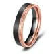 Ein schwarzer Damenring aus Black Titanium. Eine Kombination aus 49% Titan und 51% Zirkonium vereint zu einem ganz besonderen Materialgemisch. Dieser 5mm breite und ca. 1,8mm starke Ring ist tiefschwarz mattiert in Kombination mit glänzend polierter Roségold-Beschichtung! Für angenehmen Tragekomfort ist der Ring innen bombiert (abgerundet).