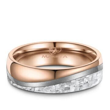 Ein wunderschöner Herrenring aus Titan (innen glänzend) rosé vergoldet und hochwertigem grauen Finecarbon. Die Ringe sind frei von scharfen Kanten sowie innen bombiert, für optimalen Tragekomfort.