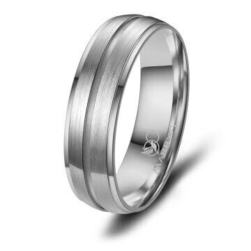 Hochwertiger Herrenring aus teils mattiertem Titan mit mittiger umlaufender Fuge. Dieser wunderschöne Ring ist top verarbeitet und sitzt durch die Bombierung (an der Ringinnenseite abgerundet) sehr bequem am Finger.