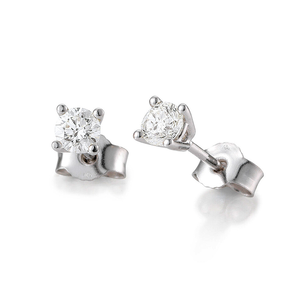 Wunderschöne Ohrstecker aus Platin mit einem Solitär gehalten von 4 Krappen. Poussettmutter und Stift. Die Abbildung zeigt die Variante in 0,5 ct.