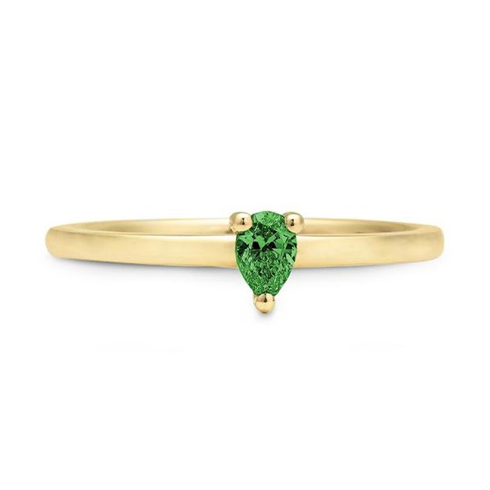 Ein wunderschöner Ring aus Gelbgold mit einem Tsavorite Farb-Edelstein in Tropfenform. Der strahlende Diamant wird von 3 Krappen sicher gehalten.