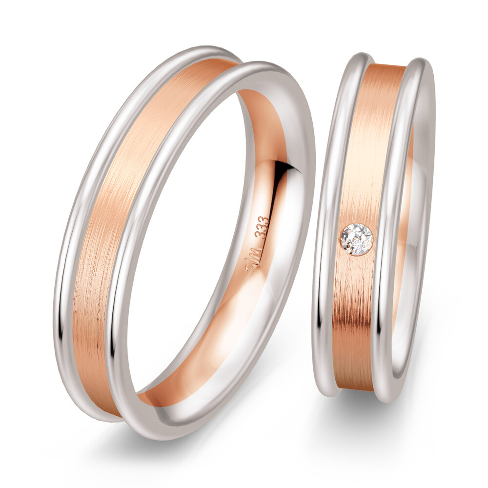 Trauringe Bicolor Weißgold & Rotgold 0.045 ct. w/si