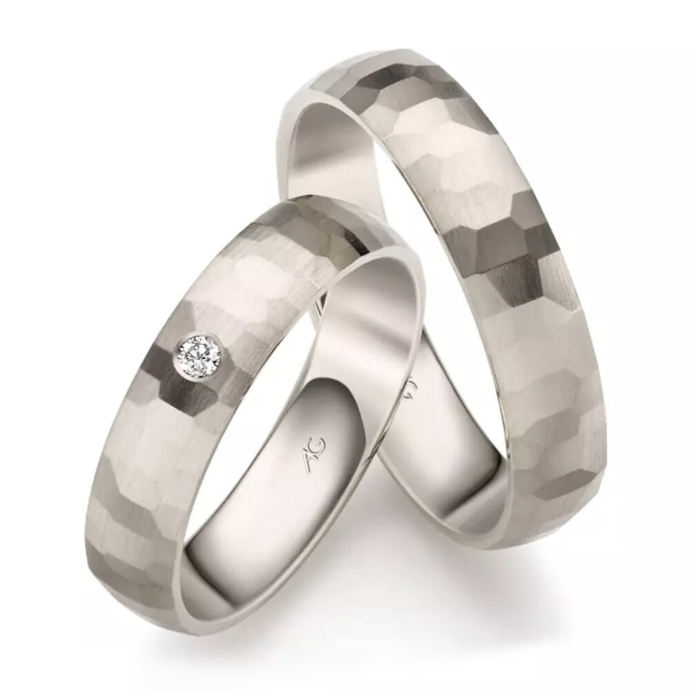 Trauringe Elfenbein-Gold gehämmert Brillant 0.020 ct.