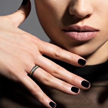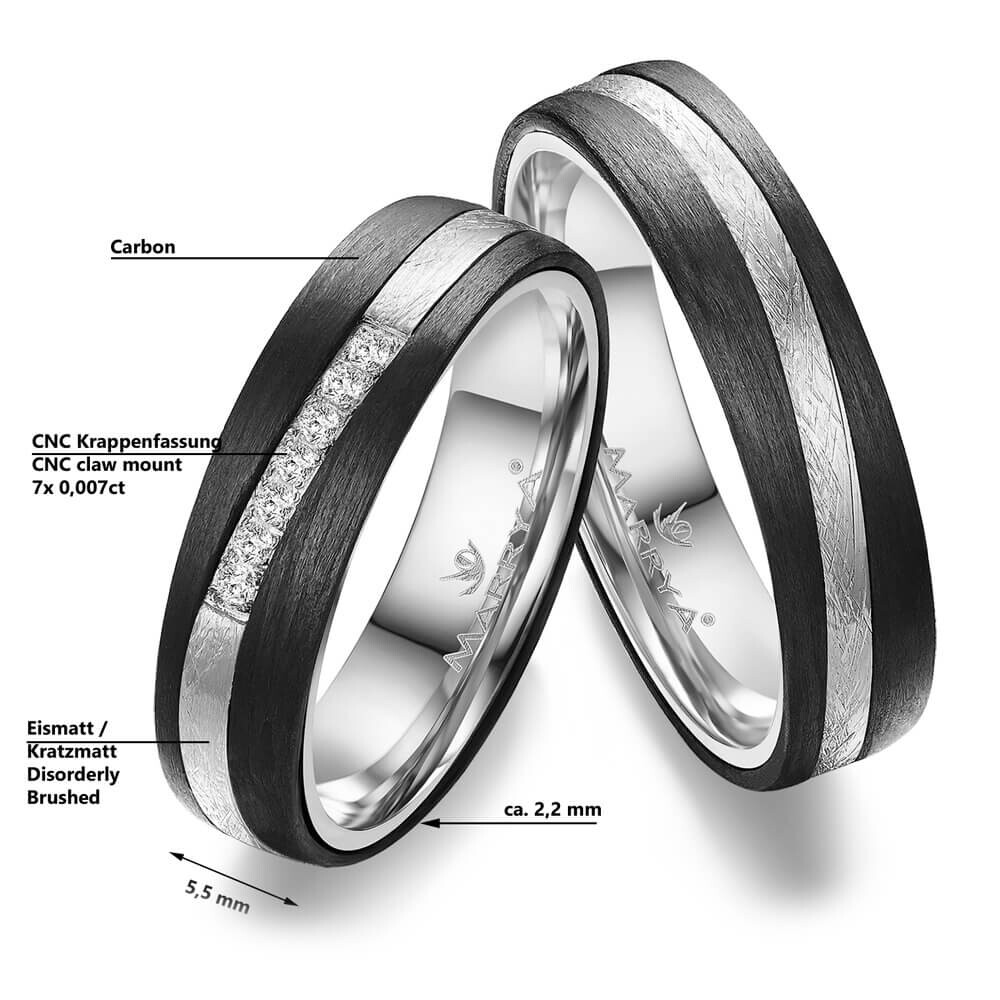 Ob Partnerringe oder Trauringe - diese Ringe aus mattem Gelbgold und schwarzem Carbon mit Zirkonia-Besatz am Damenring werden Sie begeistern. Zusätzlich sind die Ringe von innen abgerundet (bombiert). Dies sorgt für ein besonders angenehmes Tragegefühl am Finger. Ein besonderer Materialmix für besondere Paare wie Ihr es seid!