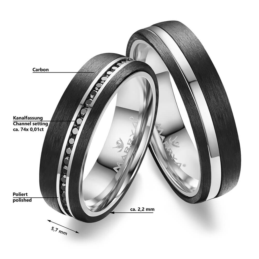 Ob Partnerringe oder Trauringe - diese Ringe aus glänzend poliertem Gelbgold und schwarzem Carbon mit schwarzem Zirkonia-Besatz am Damenring werden Sie begeistern. Zusätzlich sind die Ringe von innen abgerundet (bombiert). Dies sorgt für ein besonders angenehmes Tragegefühl am Finger. Ein besonderer Materialmix für besondere Paare wie Ihr es seid!