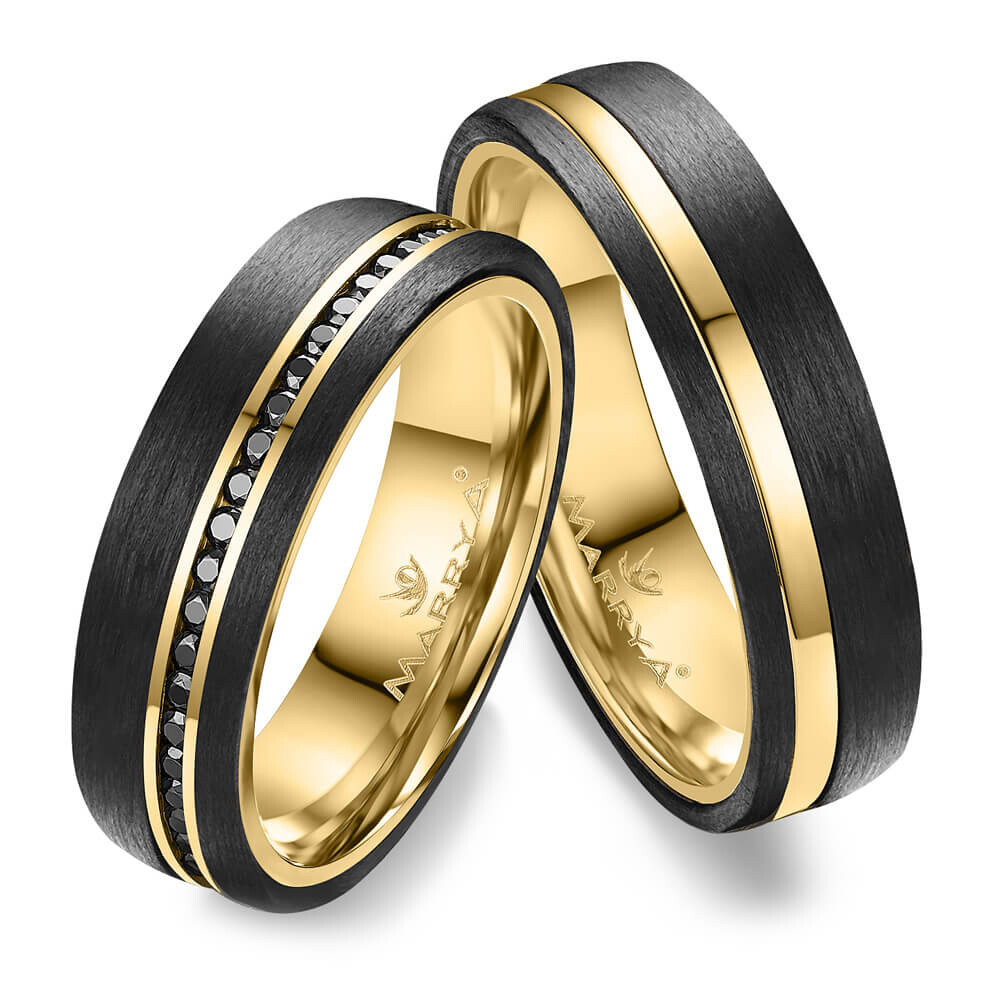 Trauringe Partnerringe Gelbgold Carbon Zirkonia CA19