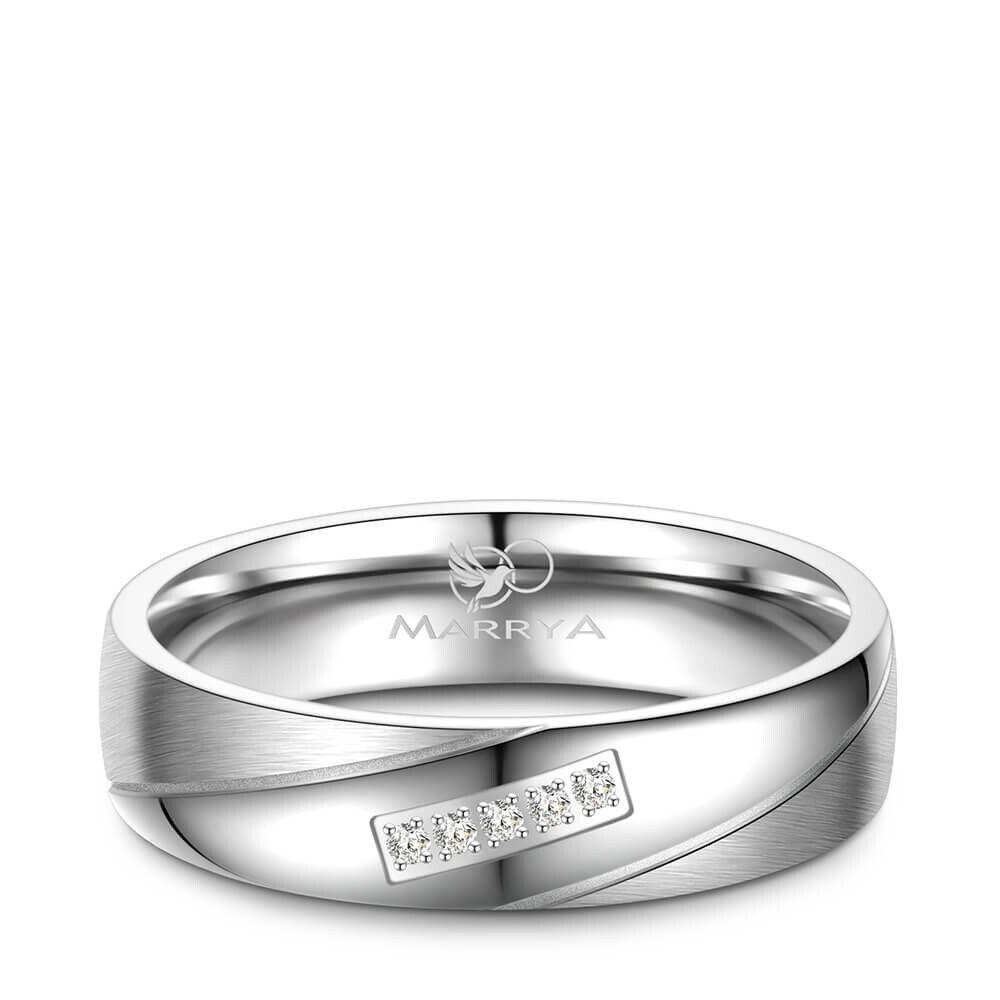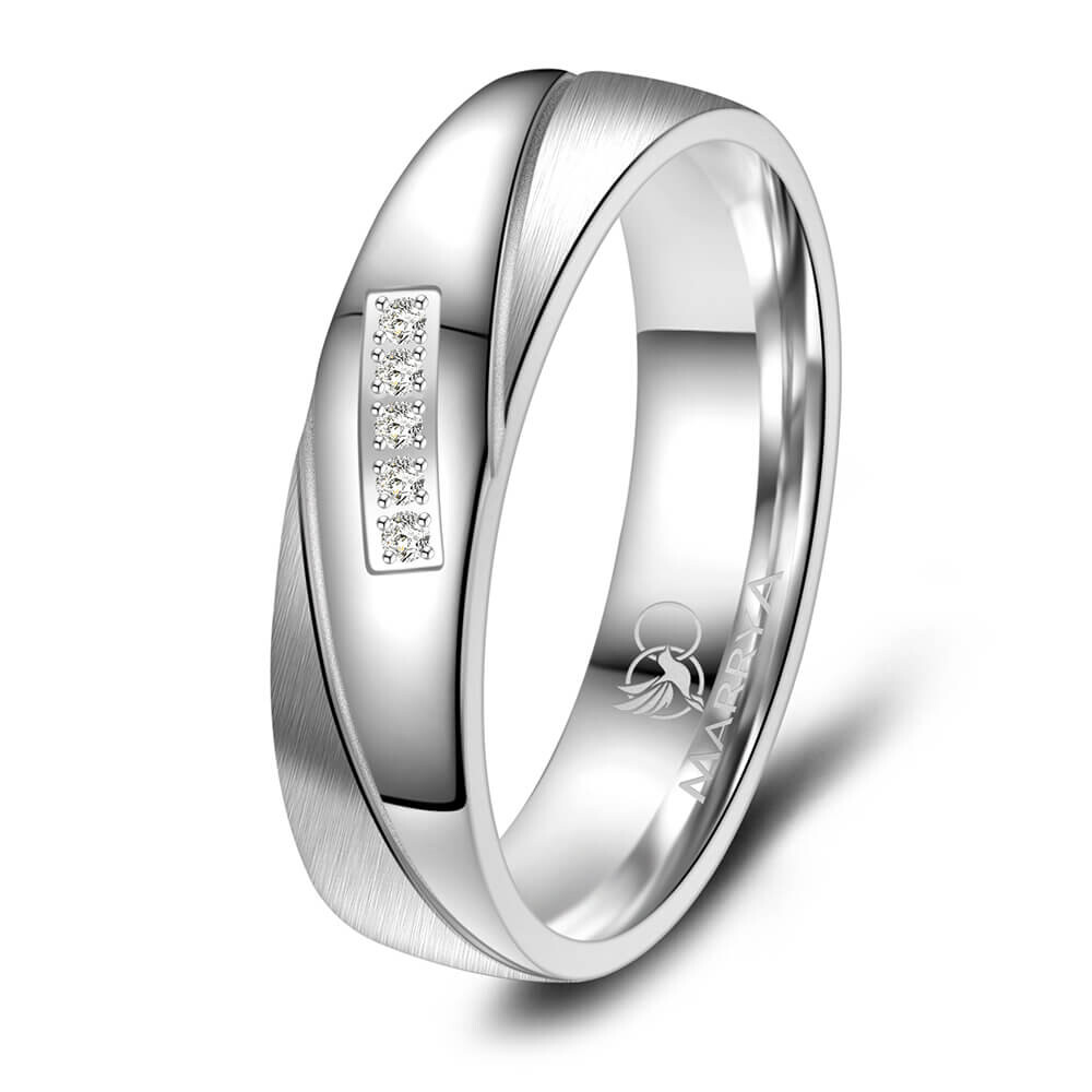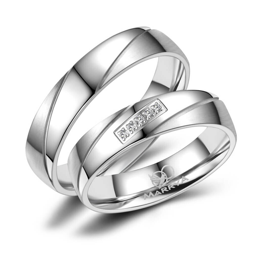 Hochwertige Trauringe / Partnerringe und Verlobungsringe aus mehrfach rhodiniertem 925er Sterlingsilber mit qualitativ hohem Anlaufschutz. Beide Ringe sind teils sandmatt und teils poliert gehalten. Der Damenring ist mit mehreren Steinen veredelt. Diese Silberringe mit abgerundeten Kanten und sitzen durch die Bombierung (an der Ring-Innenseite abgerundet) sehr bequem am Finger.