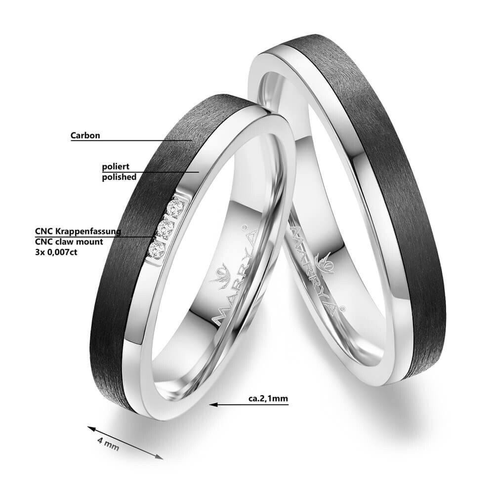 Trauringe Partnerringe Weißgold Carbon Zirkonia CA14