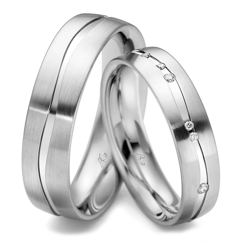Moderne, elegante Trauringe aus Platin. Für einen optimalen Tragekomfort sind die Ringe innen bombiert (abgerundet).