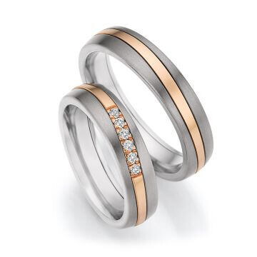 Trauringe Surfing Colors Titan & Roségold 585 Brillant 0,100 ct.