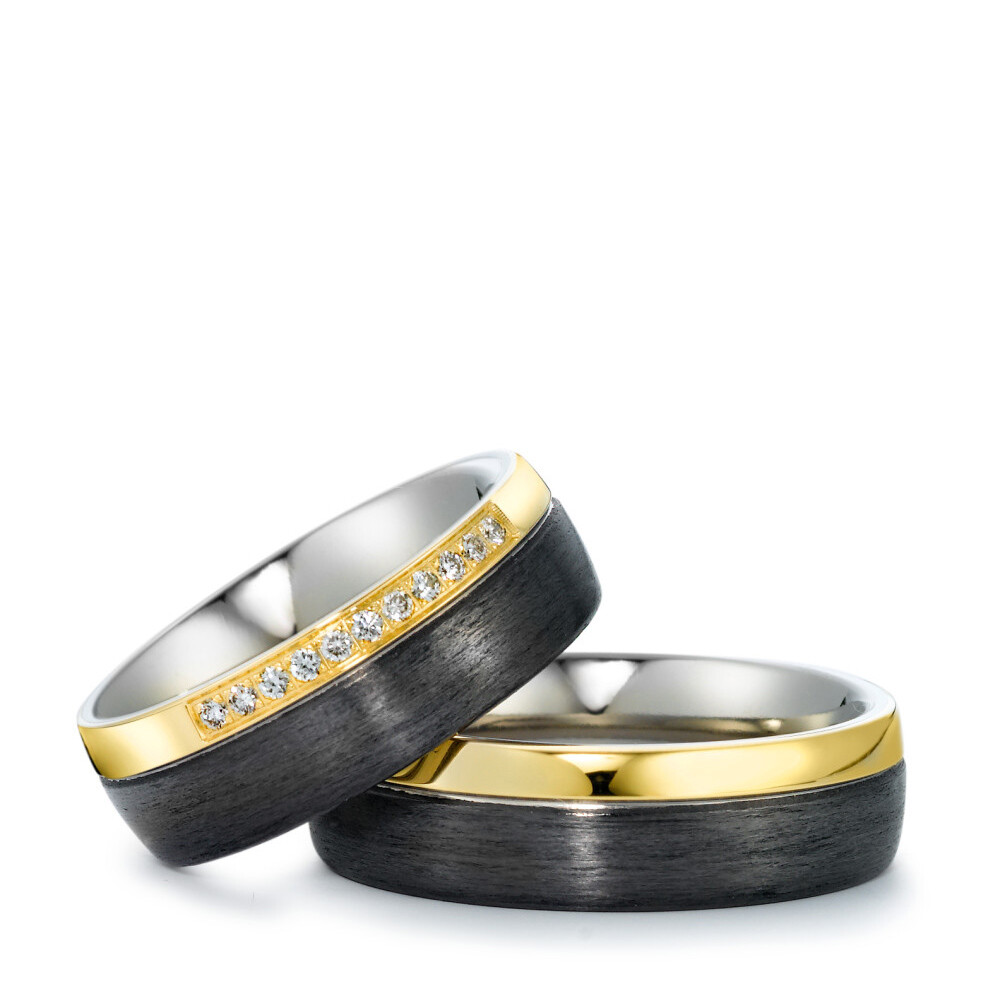 Trauringe Titan, Carbon & Gelbgold 750 Brillant 0,110 ct.