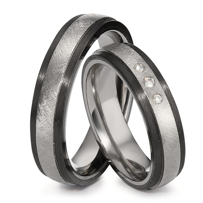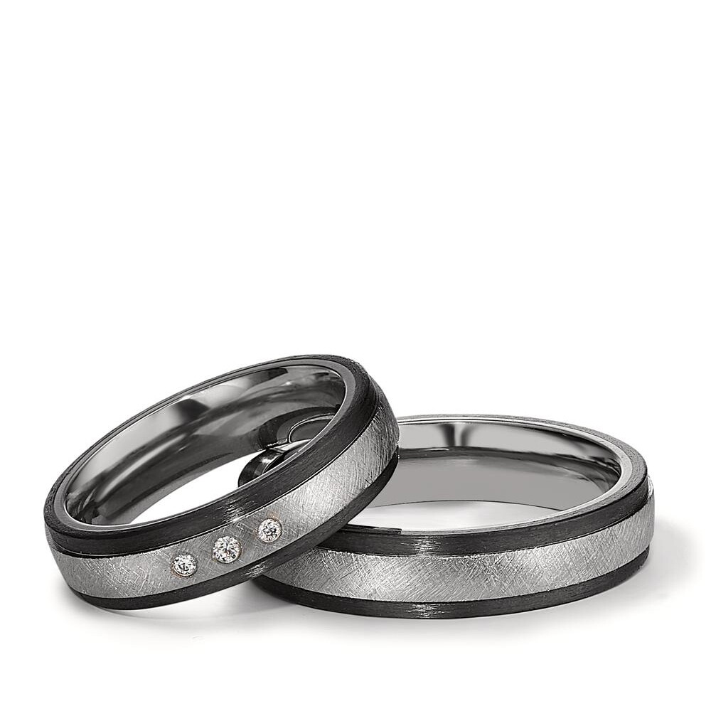 Trauringe Titan eismatt & Carbon Brillant 0,050 ct.
