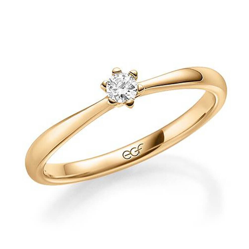 Ein faszinierender Verlobungsring aus Roségold mit einem von 6 Krappen sicher gehaltenen Chaton-Solitär. Ein strahlender Diamant in Top-Wesselton mit kleinen Einschlüssen. Wähle aus den verschiedenen Steingrößen Deinen Traumring.