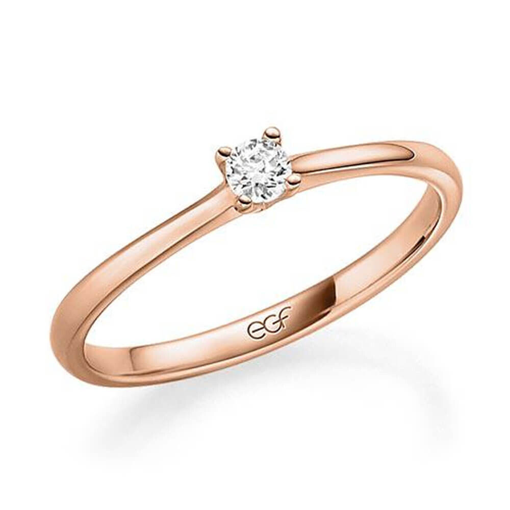 Ein wunderschöner Verlobungsring aus Rotgold mit einem funkelnden Diamanten im Brillantschliff in Top Wesselton als thronender Chaton-Solitär. Mit diesem Modell triffst Du eine hervorragende Wahl für jeden Anlass.