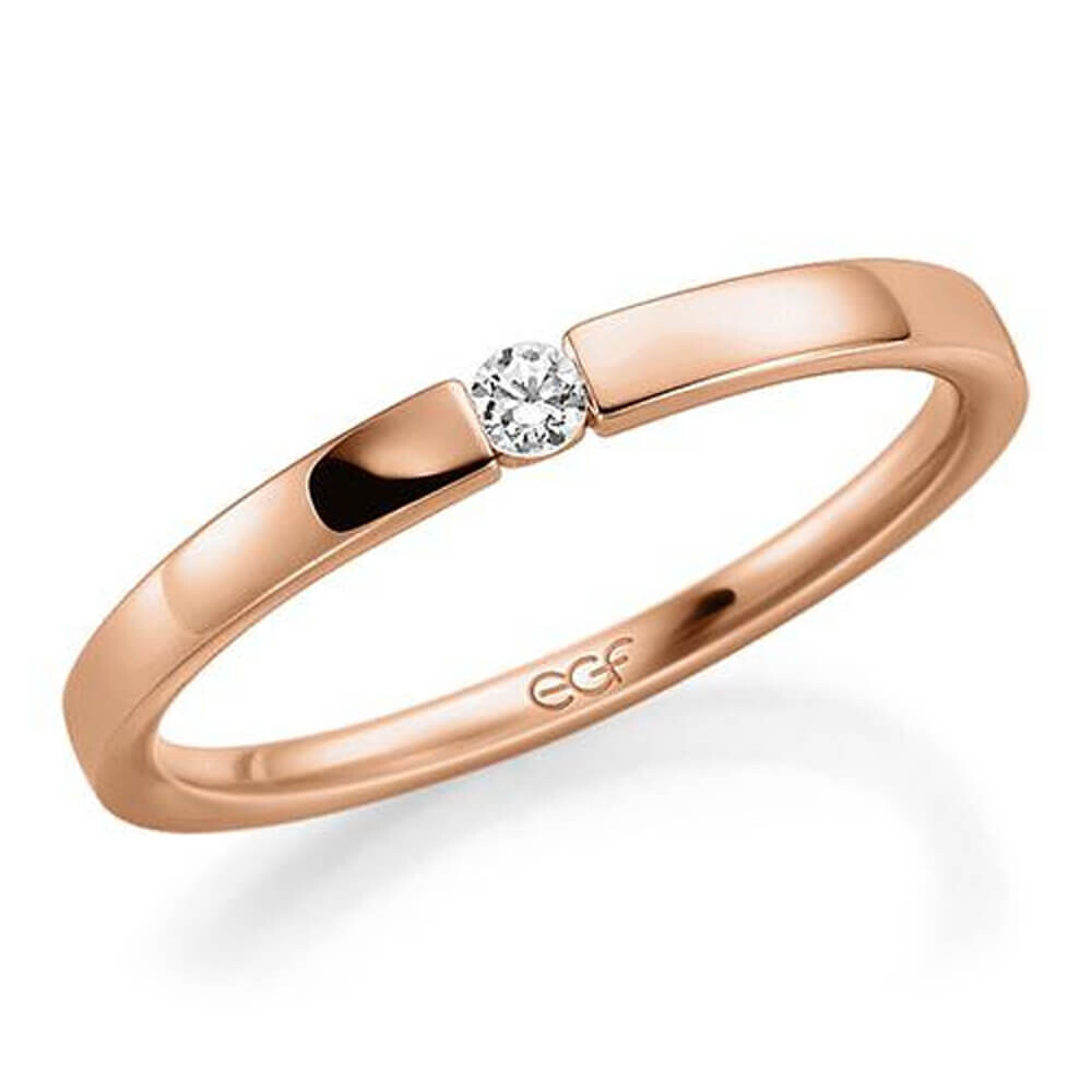 Ein wunderschöner Verlobungsring in Spannring-Optik aus Rotgold mit einem funkelnden Top-Wesselton Diamanten im Brillantschliff als Chaton-Solitär. Mit diesem Modell triffst Du eine hervorragende Wahl für jeden Anlass.