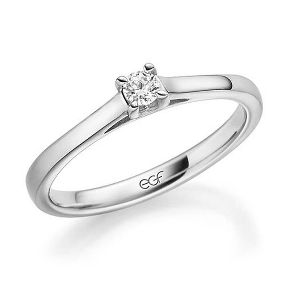 Ein atemberaubender Verlobungsring aus Weißgold mit einem strahlenden Chaton-Solitär in Top-Wesselton mit kleinen Einschlüssen. Wähle aus den verschiedenen Steingrößen Deinen Traumring.
