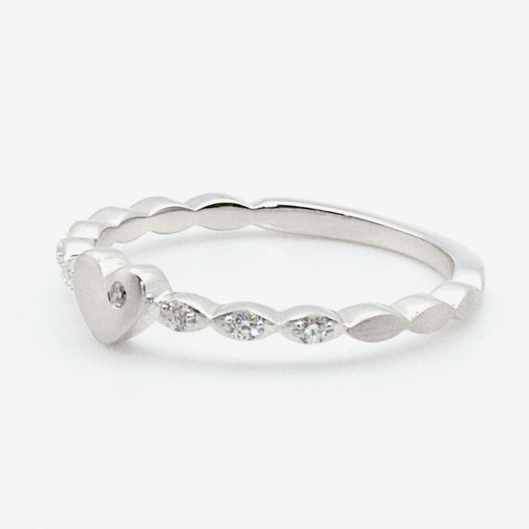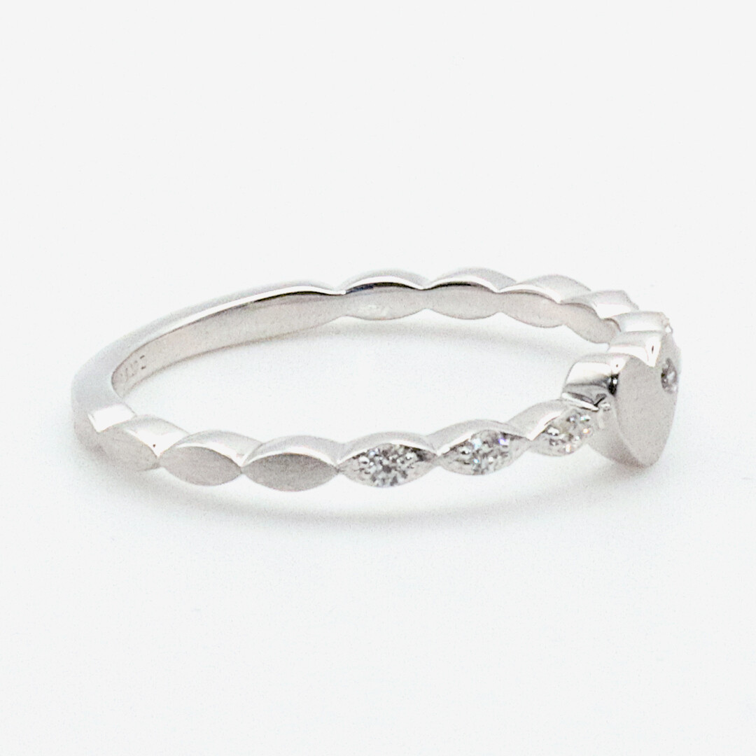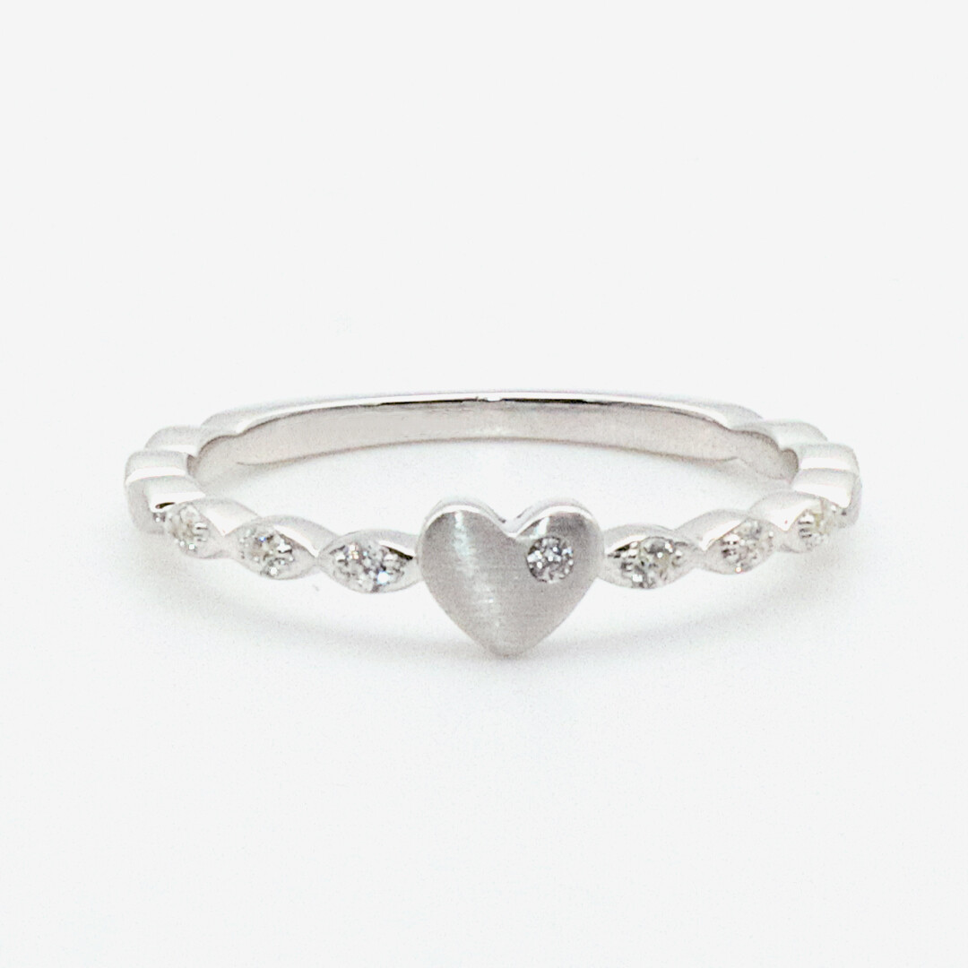 Hochwertiger und sehr charmanter Verlobungsring und Vorsteckring im Vintage-Look aus Weißgold mit mehreren funkelnden Brillanten entlang der Seiten und einem einzelnen auf dem Herzen. Liebe Männer, mit diesem wunderschönen Antragsring mit edel mattierter Oberfläche könnt ihr praktisch nichts falsch machen. Einfach WOW!