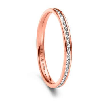 Ein wunderschöner Vorsteckring aus Edelstahl vergoldet in rosé mit mehreren leuchtenden Zirkonia in einer Mikrofassung. Kombiniere diesen robusten Schmuckring mit weiteren Schmuckstücken als Ergänzung an Deinem Finger oder trage ihn solo. Bei diesem nur zarte 2 mm schmalen Ring mit Rosévergoldung ist eine Gravur leider nicht möglich. Mit 1,3 mm ist der Ring auch sehr flach gehalten. Durch seine schlichte Eleganz passt der Beisteckring zu jedem Stil und kann sowohl im Alltag als auch zu besonderen Anlässen getragen werden. Eine preiswerte Alternative zu Ringen aus Gold.